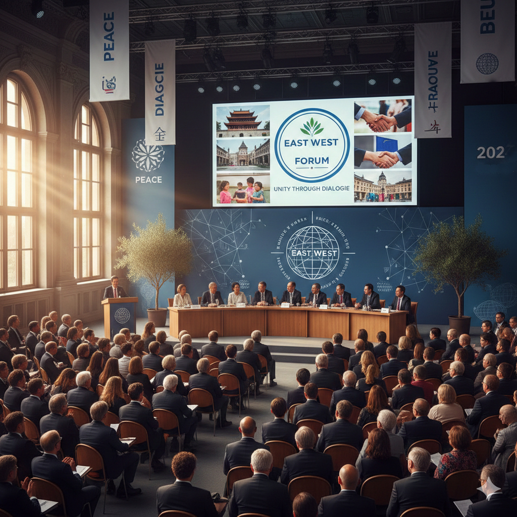 Das East-West Forum strebt danach, sich als zukunftsweisendes Gegenstück zu traditionellen Sicherheitskonferenzen zu positionieren, die typischerweise in europäischen Hauptstädten stattfinden und an einem „atlantischen Rahmen“ zur Interpretation der Welt festhalten. Die Initiatoren des EWF lassen sich von der ältesten bekannten Karte Europas aus dem Jahr 1534 inspirieren, die den Blick auf den Orient richtet und gleichzeitig fest auf eurasischem Boden steht – ein Symbol für die Perspektive, die das Forum wiederbeleben und für die heutige Zeit neu interpretieren möchte.